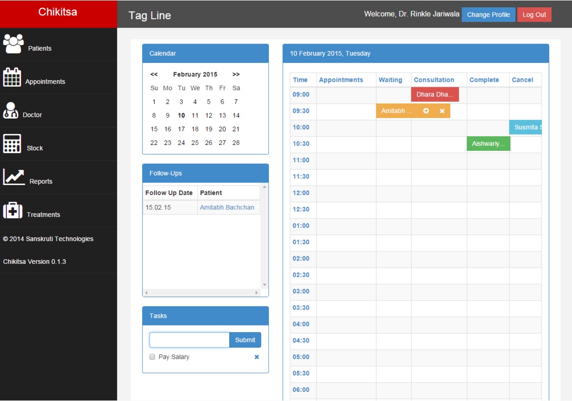 Chikitsa je systém používaný doktory na klinikách, v nemocnicích apod. Ukládá veškeré informace o každém pacientovi, tiskne doklady o platbách za vyšetření, spravuje informace o lécích, vytváří, zaznamenává události a mnoho dalšího. Software vyžaduje PHP ve verzi 5.1.6 nebo novější.