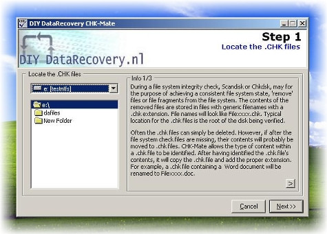 CHK-Mate je software, který vám umožňuje zobrazit a obnovit data z souborů CHK. Soubory CHK jsou vytvářeny programem Windows CHKDSK, když na vašem disku najde poškozená nebo chybějící data. CHK-Mate může zobrazit seznam souborů a složek, které byly uloženy v souboru CHK, a může také obnovit data ze souboru CHK do jiného souboru.