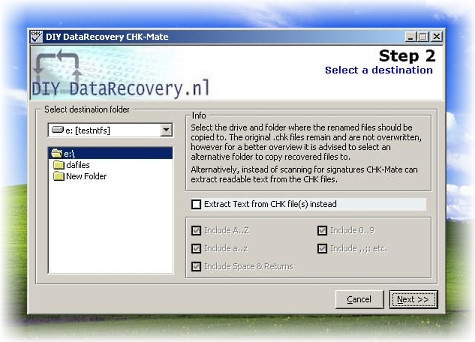 • Obnova dat ze souboru CHK do jiného souboru
