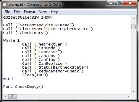 Clonepad obsahuje všechny základní funkce pro jednoduché a rychlé prohlížení a zpracování souborů. Program dokáže detekovat kódování právě editovaného souboru a udržet jej po celou dobu procesu úprav. Můžete kódovat dokument k jednomu z těchto typů: ANSI, UTF-8, UTF-16 little endian, UTF-16 Big Endian. Navíc můžete nastavit kódování (nový), soubor výchozí k jednomu z výše uvedených typů. Všimněte si, že kódování soubor nezmění, dokud jste neuložili změny provedené v tomto souboru.