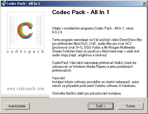 Jednoduše si nainstalujete ty nejdůležitější kodeky pro přehrávaní filmů.