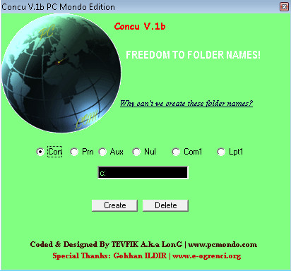 Concu je jednoduchý nástroj, který vám umožní vytvořit adresář s jakýmkoliv názvem, i takovým, který Windows běžně nepovolují.