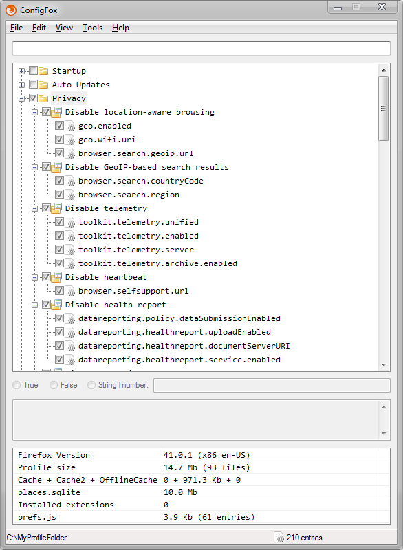ConfigFox je nástroj pro správu internetového prohlížeče Mozilla Firefox. Odtajní vám skrytá nastavení a vylepšení, které se většinou týkají bezpečnosti a soukromí. K dispozici jsou možnosti pro vytváření Firefox profilů, přizpůsobení, povolení a zakázání některých voleb, rychlé vyhledávání Config položek, zálohování profilů, získávání statistik o profilech, podobně jako online vyhledávání Config řetězců.