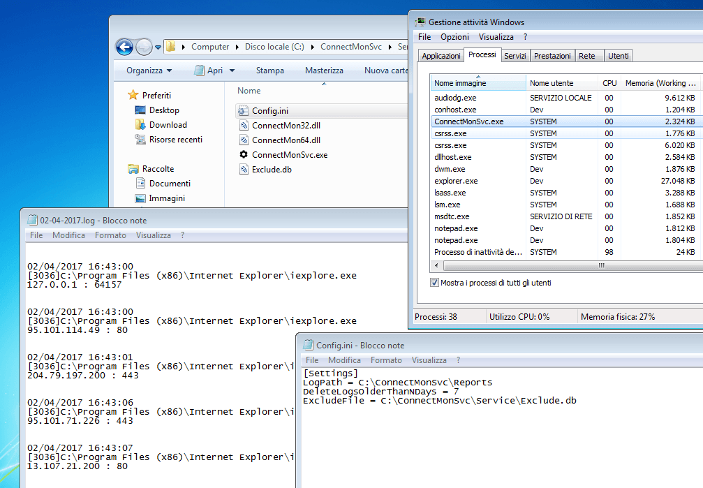 Servisní aplikace, která protokoluje odchozí připojení TCP a UDP v systému na základě jednotlivých procesů. Název procesu, id procesu, protokol, IP adresa a číslo portu se zaprotokolují, takže je snadné zjistit, jaká připojení byla na vašem počítači provedena.