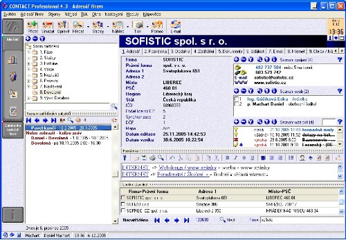 Tento software představuje profesionální nástroj pro evidenci vašich kontaktů, tvorbu zákaznických databází a plánování času. Obsahuje systém inteligentního třídění (kategorizace) kontaktů a evidenci agend, které jsou s kontakty úzce propojeny. Jedná se hlavně o dokumenty, e-maily, obchodní projekty, poznámky, jednání, telefonáty a další související činnosti včetně řízení prodejního cyklu, plánování času, úkolů a aktivit.