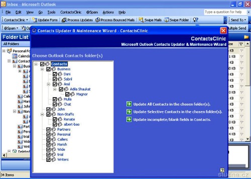 ContactsClinic je kompletní správa kontaktů pro Microsoft Outlook klienta. Tento pokrokový plugin umožňuje všem uživatelům Microsoft Outlooku automatický update a organizování jejich Outlook kontaktů. Nabízí možnost automatické aktualizace kontaktů, odstranění duplicitních a neplatných kontaktů, import elektronických adres z textových souborů a zálohování kontaktů.