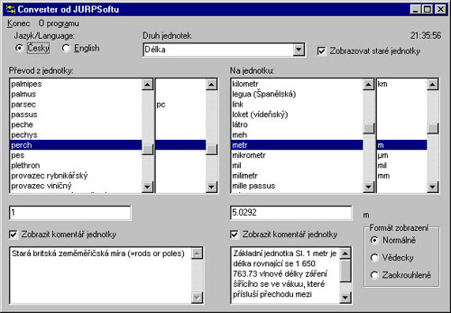 Pozn.: na stránkách tohoto programu je ke stažení databáze jednotek.