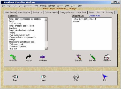 Tento program umožňuje organizování a vyhledávání několika desítek různých receptů. Hledat můžete podle druhu jídla, suroviny atd. Do tohoto programu můžete vkládat i své vlastní recepty. Program je velice přehledný a praktický.