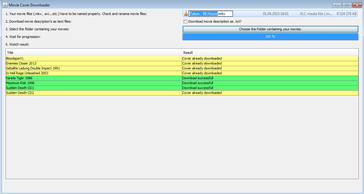 Cover Downloader je malý nástroj, určený pro stahování filmových obalů k video souborům ve formátech (MKV a AVI). Podmínkou je mít u všech video souborů přesný název v anglickém jazyce. Dále je třeba určit cílový adresář, kde jsou uloženy filmové tituly.