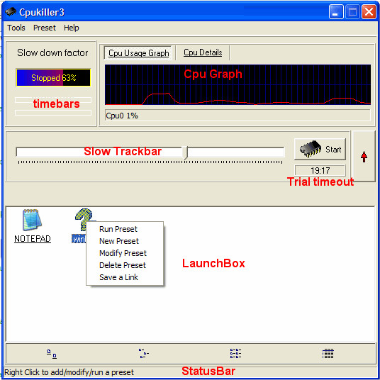 Cpukiller je snadno použitelný. Stačí jej stáhnout a nainstalovat, poté jej spustit a vybrat hru, kterou chcete hrát. Cpukiller automaticky zpomalí výkon počítače na úroveň, kterou hra podporuje. Poté můžete hru spustit a hrát bez jakýchkoli problémů.