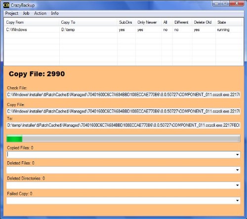 CrazyBackup je šikovný prográmek, který umožňuje zálohovat vaše vybrané adresáře a soubory. Zálohovat můžete všechny soubory s podadresáři nebo bez, jen nové soubory, vymazat nepotřebné atd.