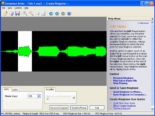 Create Ringtone, prográmek pomocí kterého si vytvoříte vyzvánění na váš mobilní telefon ve formátech MP3 a WAV. Vstupní soubory mohou být ve formátu MP3, WAV, WMA a OGG, případně hudební CD.