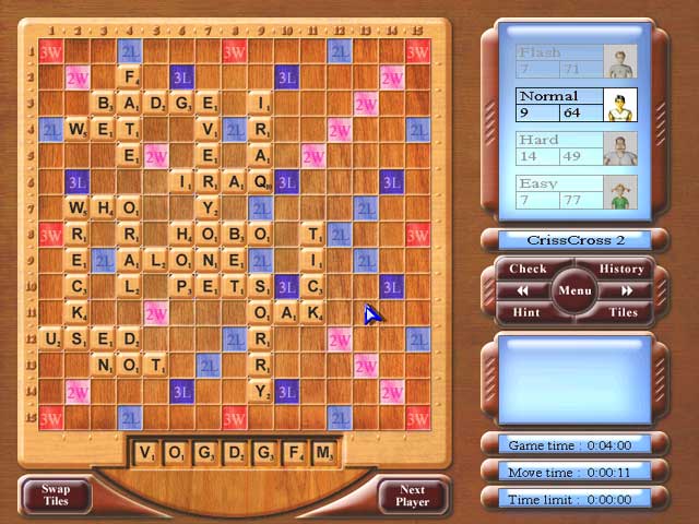 Super stolní hra nyní v počítači. Už si nemusíte počítat ručně body! Hru můžete hrát spolu ještě se 3-mi kamarády, nebo proti počítači. Pravidla jsou stejná jako u hry Scrabble. Příjemnou zábavu.