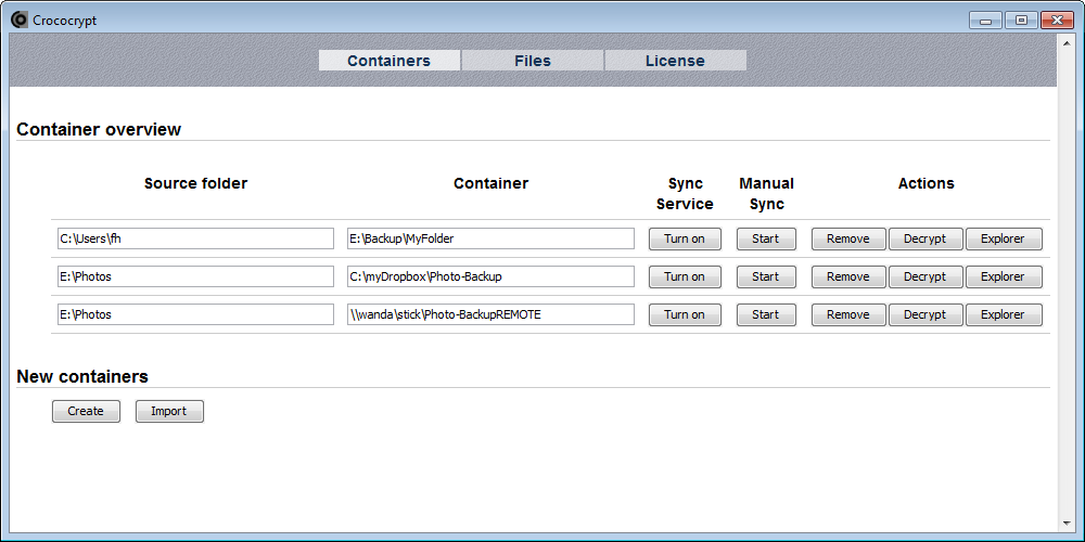 Crococrypt je nástroj určený k šifrování, který zrcadlí celé složky do šifrovaných složek. Šifrovací algoritmy, které jsou použity, jsou AES a Twofish (256 bitů, kaskádové). Keyfile je zabezpečen heslem pomocí PKCS # 5 (PBKDF2) s SHA512 / Whirlpool na základě HMAC pomocí 100000 interakcí a také AES a Twofish.