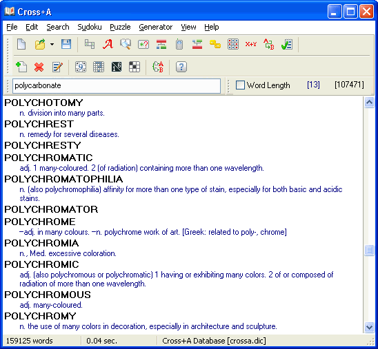 Cílem programu Cross+A je zjednodušit řešení křížovek, slovních hádánek, sudoků křížovek, nonogramů a dalších logických hádánek. Nabízí velmi flexibilní a výkonné nástroje pro vyhledávání. Uživatel může vyhledávat anglická slova (i pomocí písmenek) a různé slovní kombinace. Jedná se o více jazyčné verze programu. Slovník obsahuje 159000 anglických slov (část z nich s popisem) a přídávat lze i nová slova, mazat, měnit popisy či zkopírovat do schránky.