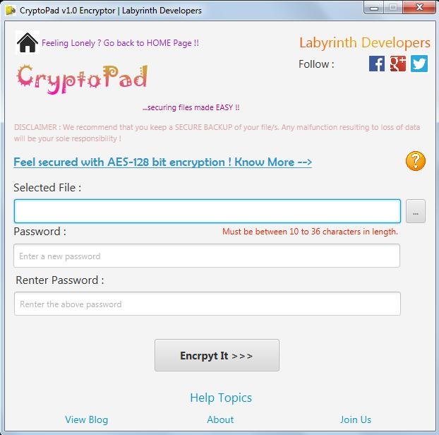 CryptoPad je šifrovací aplikace založena na Javě. Je možné zašifrovat každý typ souboru. CryptoPad používá AES-128 bitové symetrické šifrování pro zabezpečení Vašich dat.