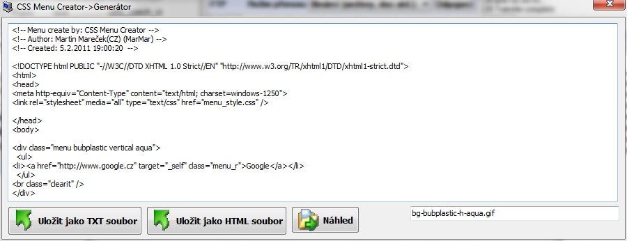 | Detail produktu CSS Menu Creator | |