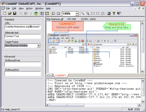 CuteMAP je nástroj určen pro tvorbu tzv. klikacích map. Do programu se načte obrázek, který chceme upravit, pomocí kurzoru vyznačíme oblast, která má reagovat na kliknutí, doplníme adresu, kam má odkaz směrovat. Výsledek uložíme na disk nebo vytvořený HTML zkopírujeme a vložíme sami do webové stránky.