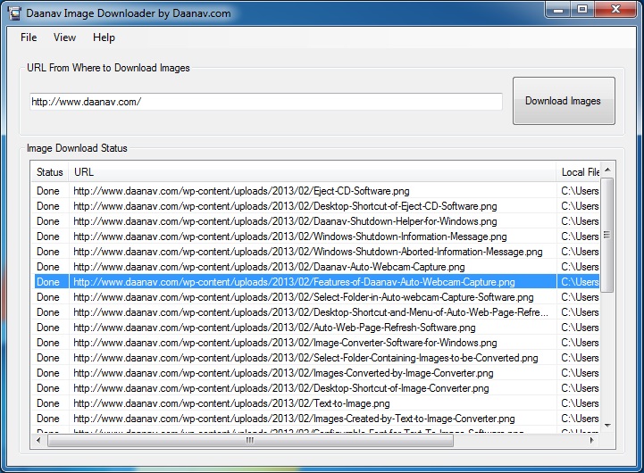 Daanav Image Downloader je aplikace ke stažení všech snímků z jakékoliv URL adresy. Tato aplikace nevyžaduje žádnou konfiguraci a stačí pouze zadat adresu URL a klepnout na tlačítko "Stáhnout". Jakmile jsou snímky staženy, aplikace vytvoří a otevře html stránku, která obsahuje všechny obrázky stažené tímto programem.