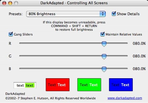 DarkAdapted je šikovná aplikace pro úpravu barev, jasu a dalších parametrů na monitoru.
