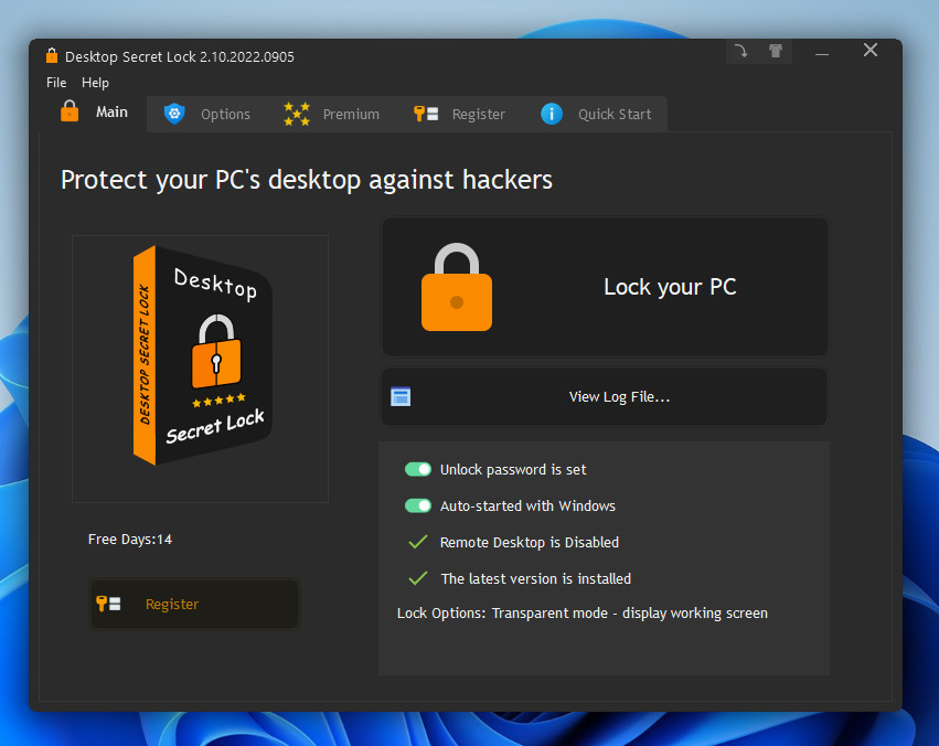 Desktop Secret Lock je snadno použitelný a nenáročný na systémové zdroje. Program lze nainstalovat na jakékoli zařízení s Windows a funguje v pozadí, aniž by ovlivňoval výkon počítače.