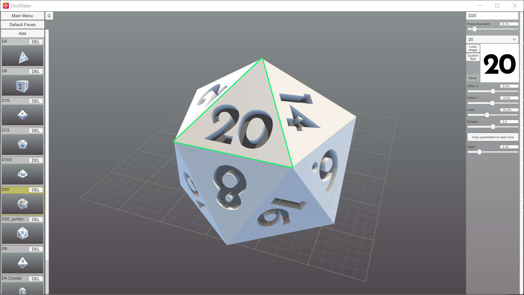 DiceMaker je nástroj, který umožňuje vytvářet vlastní hrací kostky. Můžete si vybrat z různých tvarů, přidat obrázky nebo text a nakonec kostku vytisknout na 3D tiskárně.