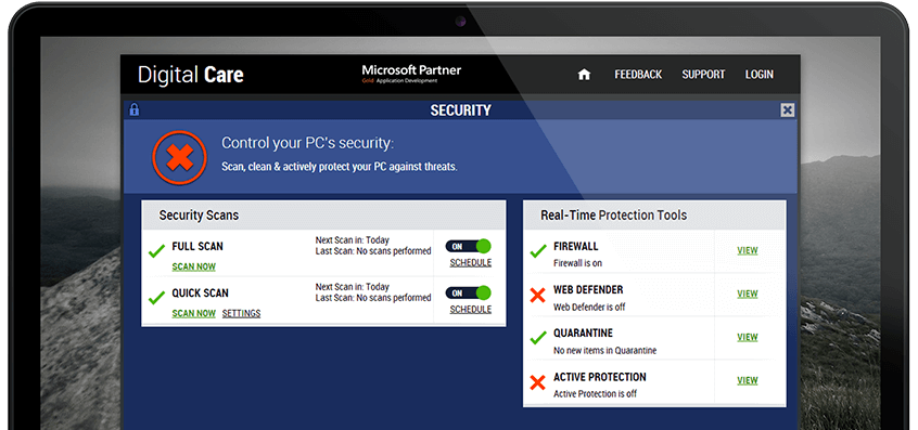 Digital Care nabízí plnou ochranu a zabezpečení vašeho počítače pro neutralizaci existujících hrozeb a ochrání před budoucími útoky.
