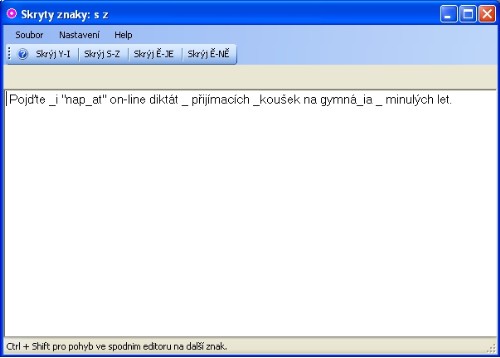 Program slouží k snadnému vytváření diktátů i, k jejich zkoušení z libovolného textu.