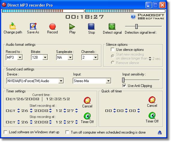 Direct MP3 Recorder je nástroj pro nahrávání audia z interních nebo externích zdrojů přes zvukovou kartu, do 4 různých formátů: MP3, WMA, Ogg Vorbis, Wave. Program můžete zminimalizovat do systémové lišty a rychle nahrávat zvuk pomocí horkých kláves.