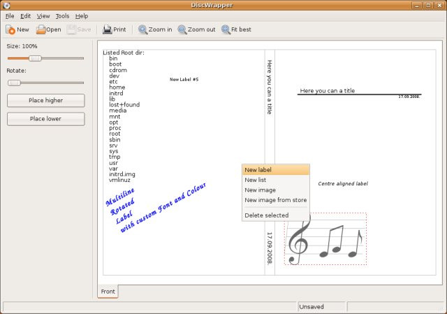 DiscWrapper je bezplatný a snadno použitelný nástroj pro tvorbu originálních obalů pro vaše CD a DVD. Program nabízí několik šablon pro rychlý a snadný začátek, a také umožňuje importovat vlastní nápisy a obrázky. Výsledné obaly lze vytisknout na domácí tiskárně.