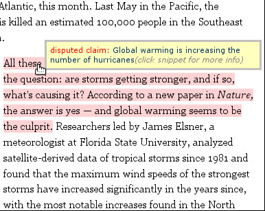 Dispute Finder je snadno použitelný. Stačí jej nainstalovat do Firefoxu a začít používat. Když navštívíte webovou stránku, Dispute Finder automaticky vyhledá protichůdné tvrzení. Můžete také vyhledat konkrétní téma a Dispute Finder vám ukáže všechny stránky, které obsahují protichůdné názory na dané téma.