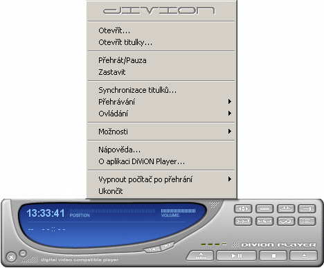 DiViON Player umí přehrávat běžné typy audio a video souborů a podporuje i titulky. Přehrávač je skinovatelný a má snadné ovládání.
