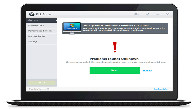 DLL Suite skenuje, detekuje a opravuje chyby v systémovém registru Windows. Je zaměřen na chybné klíče v registru. Obsahuje možnost vytvoření zálohy nebo stažení DLL souboru, optimalizuje výkon.