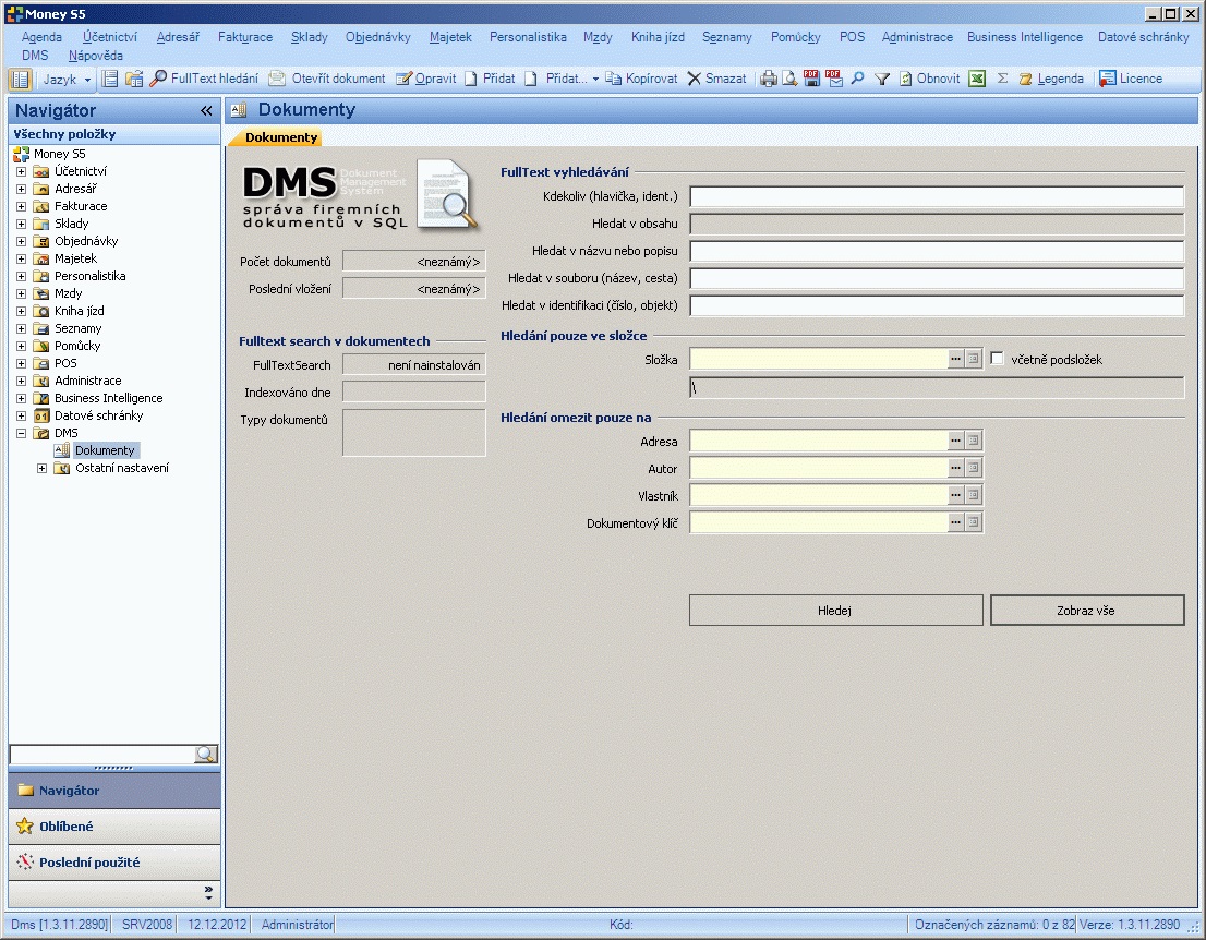 - FullText Search: podrobné vyhledávání včetně obsahu dokumentů