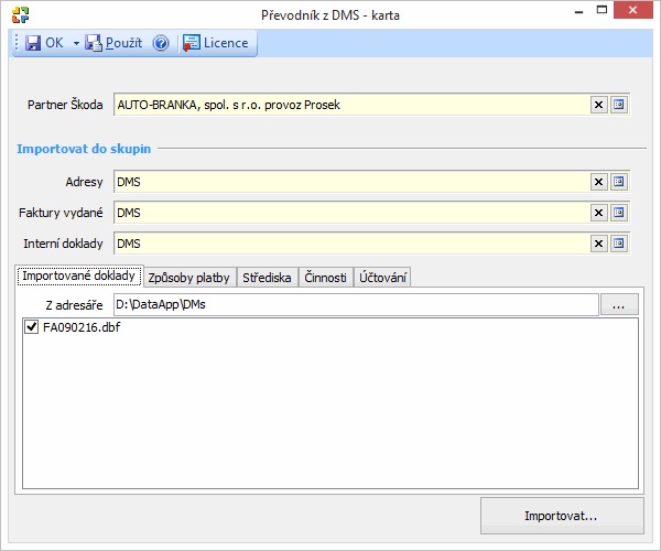 DMStoMoney S4/S5 je aplikace pro import dat z DMS (Dealer Management System využívaný v obchodní síti ŠKODA AUTO) do Money S4/S5 realizovaná jako modul Money.