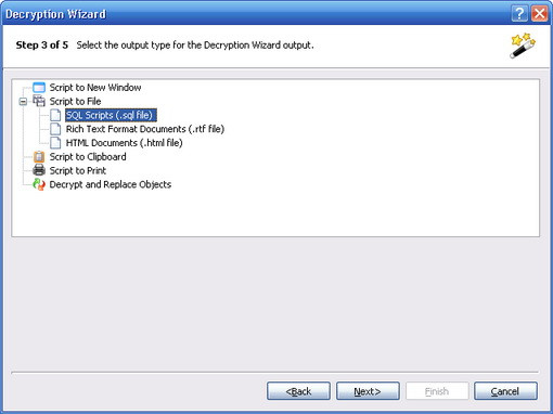 DMT SQL Decryptor umožňuje databázovým administrátorům rychle dešifrovat objekty, jako jsou uložené procedury, pohledy, uživatelsky definované funkce, tabulkové triggery, databázové triggery a serverové triggery v Microsoft SQL Server 2000/2005.