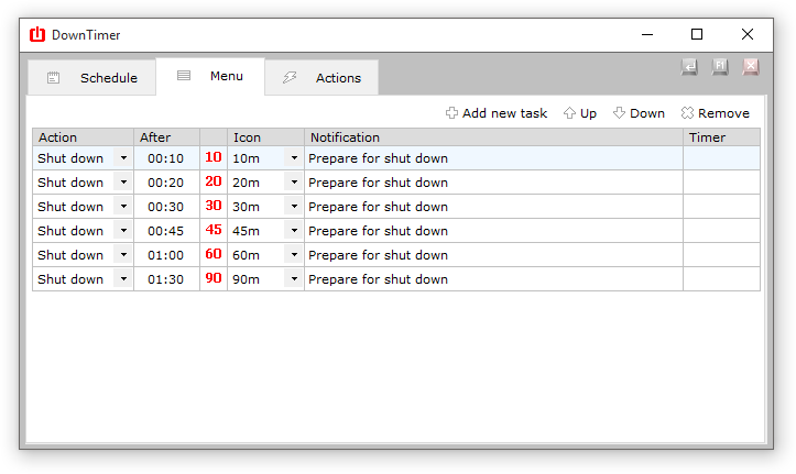 DownTimer je malá utilitka, která se používá k automatickému vypnutí PC. Můžete nastavit intervaly vypnutí. Aktivace časovače můžete provádět klávesovou zkratkou.