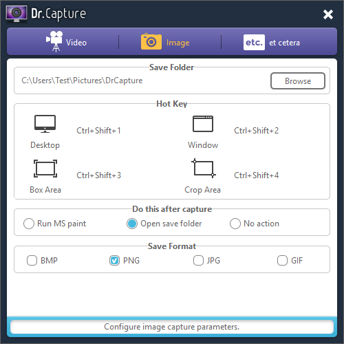 Dr.Capture je nástroj se kterým můžete zachytávat obrazovky a ukládat je ve formě screenshotů či video nahrávek. Zaznamená celou plochu, vybrané okno nebo libovolnou oblast obrazovky. Nastavení vstupní obrazové kvality je samozřejmostí. Nástroj také umožňuje možnost nahrávání kurzoru, zahrnutí zvuku do nahrávky, vložení vodoznaku atd. Nástroj dokáže také nahrávat hry, které následně můžete sdílet s přáteli.