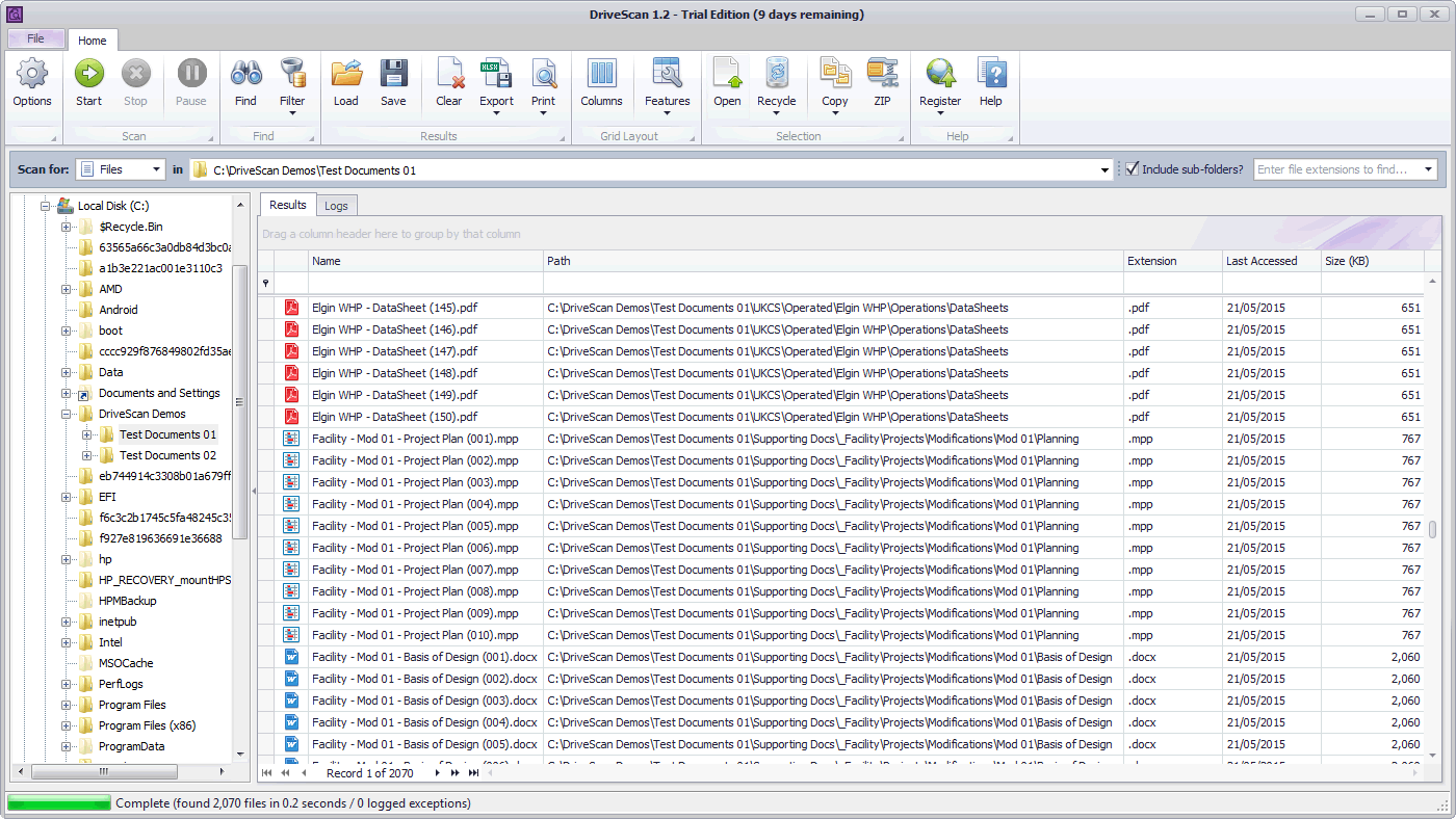 S programem DriveScan můžete spravovat dokumenty, či složky se základními operacemi (hromadné kopírování, přemísťování, mazání). Poradí si s lokálními disky, se složkami sdílenými přes internet, s úložišti v mobilních telefonech a jinými diskovými médii.