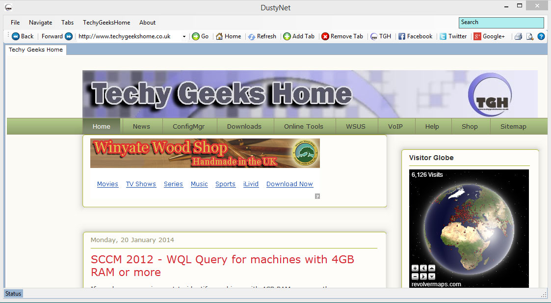 DustyNet je jednoduchý a snadno použitelný webový prohlížeč. Můžete jej spustit přímo z jediného spustitelného souboru, a dokonce i z USB klíčenky. Obsahuje základní možnosti, tlačítka zpět a vpřed mezi navštěvovanými stránkami, adresní řádek, tlačítko Domů, Jít na..., obnovení atd. Internetové stránky lze otvírat a přepínat mezi nimi pomocí záložek.