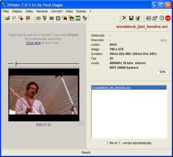 DVdate je výkonná utilita pro zpracování AVI souborů a speciálně AVI DV souborů. Využívá mnoho užitečných funkcí a umožňuje zpracování většího množství AVI souborů najednou.