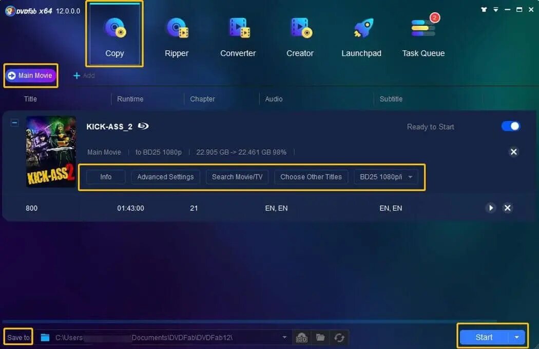 DVDFab Blu-ray Copy je plnohodnotný software, který odstraní všechny Blu-ray ochrany proti kopírování a zkopíruje jakýkoliv Blu-ray na Blu-ray/DVD/AVCHD disky nebo na pevný disk. Nabízí 4 režimy kopírování a další nastavení, kde má uživatel možnost upravit a přizpůsobit vlastní Blu-ray podle specifických potřeb.