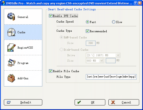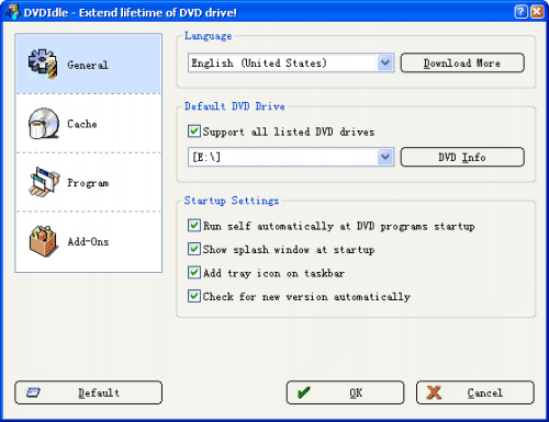 DVDIdle Vám pomůže rozšířit životnost Vaší DVD jednotky. Použitím cache se čtením dopředu, uloží DVDIdle data z DVD, která budou následně přehrávána, na disk nebo do paměti RAM a pak je odešlou přímo softwarovému DVD přehrávači, takže DVD jednotka odpočívá. Například: 6-ti rychlostní DVD jednotka bude pracovat pouze 15 minut při sledování 90-ti minutového DVD filmu.