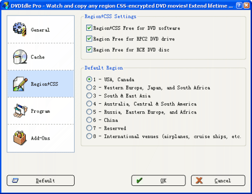 DVD Region+CSS Free pracuje na pozadí tak, aby se DVD disk softwarovému DVD přehrávači jevil nechráněn žádnými ochranami ani kódy. Díky programu DVD Region+CSS Free můžete sledovat DVD filmy s jakýmkoli kódem v softwarových DVD přehrávačích jako PowerDVD nebo WinDVD. S kopírovacími softwary jako DVDFab, DVD X Copy, InterVideo DVD Copy, atd. můžete kopírovat i ty disky, které jsou chráněny.