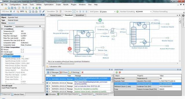 - VLE, VLLE, SLE výpočty pomocí stavové rovnice, aktivitu koeficientu a Chao-Seader modely