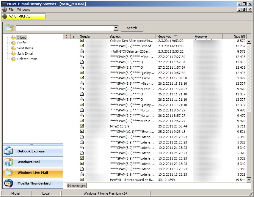E-mail History Browser shromažďuje a zobrazuje historii e-mailové komunikace převzatou z podporovaných e-mailových klientů v komplexním rozhraní s výkonným enginem pro filtrování. Můžete tak zobrazit všechny Vaše, e-mailové komunikace.