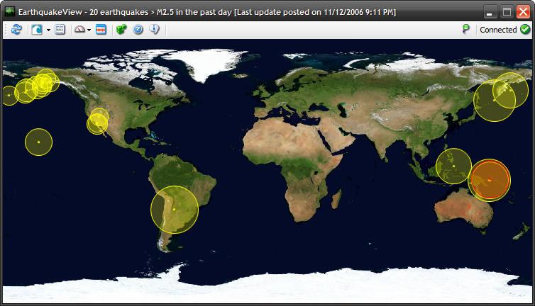 EarthquakeView je nástroj pro automatické sledování zemětřesení po celém světě a jejich zobrazení na interaktivní mapě světa.