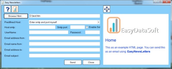 Program Easy Newsletters vám umožní jednoduše posílat newsletter vyrobený ve formátu HTML. Můžete ho poslat na Gmail, Yahoo, Hotmail nebo na vlastní SMTP server.