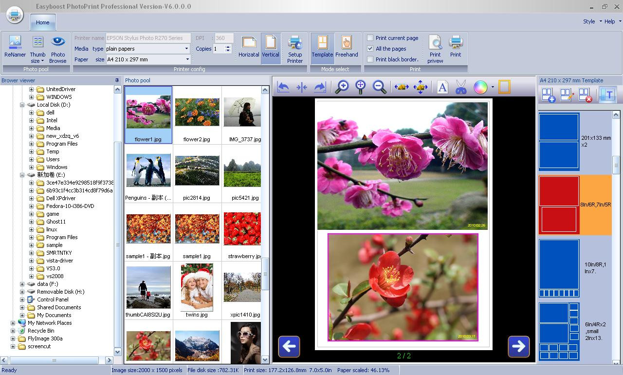Easyboost Photo Print je snadno použitelný nástroj, který vám umožní vytvořit a vytisknout vlastní foto koláž. Stačí importovat své fotografie do programu, vybrat si šablonu a upravit fotografie podle vašich představ. Program nabízí řadu efektních šablon, které vám umožní vytvořit jedinečnou a originální koláž. K dispozici jsou také editační nástroje, které vám umožní upravit expozici fotografií, přidat efekty nebo rámečky. Jakmile budete s výsledkem spokojeni, můžete koláž vytisknout na domácí tiskárně nebo objednat u profesionálního tisku.