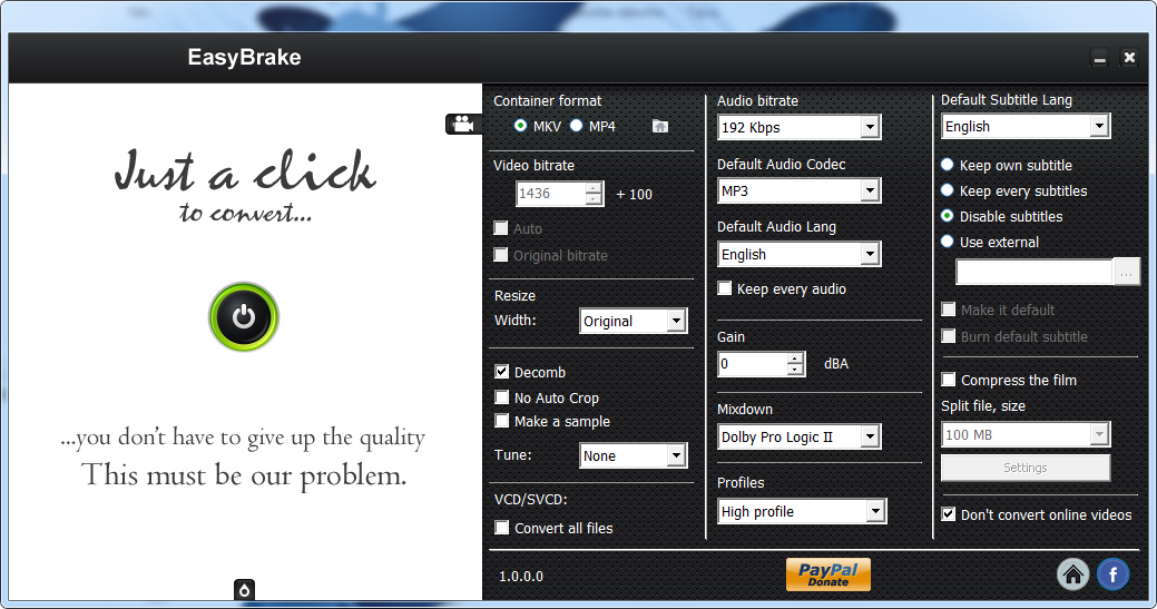 EasyBrake je nástroj pro jednodušší konverzi multimediálních souborů do jiných formátů.